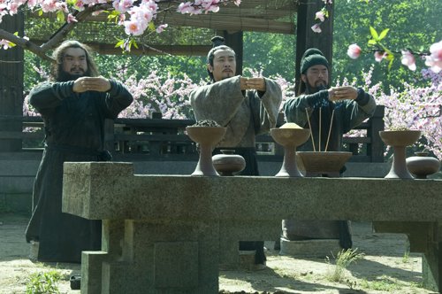 说起刘关张,大家总是免不了想起桃园三结义和三英战吕布,可惜,这两件事都是罗贯中编出来的,史书上对刘关张三人的关系是这样说的:“寝则同床,恩若兄弟”(《三国志。关张马黄赵传》),只是说感情好的象兄弟,并没有说结拜成兄弟,更不会去选择什么桃园结拜了。自然,罗贯中这样写是为了增加小说的可看性,反正史书上说恩若兄弟,那我说结拜也可以,这样也可以为小说后文的情节发展打下一些基础,而之后的三英战吕布也是如此,为了展示三人的英武而已,史书上这件事根本没出现过,刘关张三人并肩作战的时间是很多,但是古代战争又不是真的唱戏,你派一个我派一个单挑,自春秋以后,大将的主要功能就是指挥用兵,将领之间的对抗确实有,但是主要是在小股用兵时带头冲锋遭遇战,而且大都一两个回合解决,杀个几百回合一天一夜那先不说你体力能否吃得消,在一边看的小兵又不是吃闲饭的。