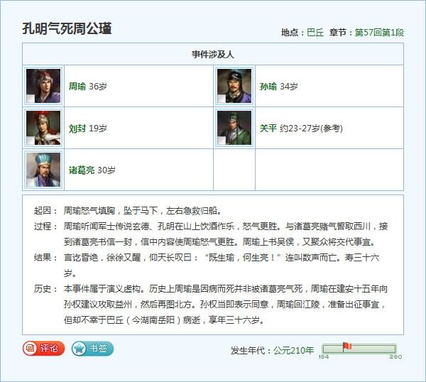 三国演义中的周瑜之死(出自三国演义电子辞典)