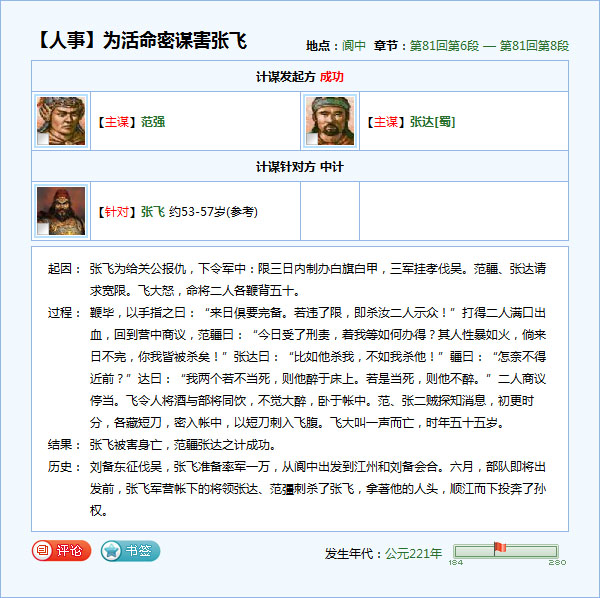 范疆张达刺杀张飞在演义中的记载(出自三国演义电子辞典)