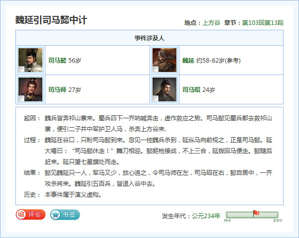 司马懿误入上方谷在三国演义中的记载(出自三国演义电子辞典)