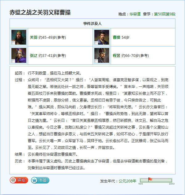 关羽义释曹操在演义中的记载(出自三国演义电子辞典)