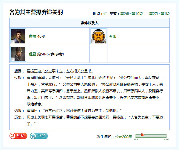 曹操弃追关羽在演义中的记载(出自三国演义电子辞典)